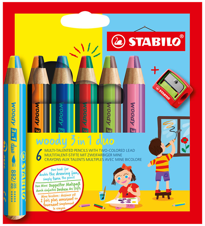 Stabilo Farveblyanter - Woody 3-i-1 Duo - 6 Stk. - Multifarvet
