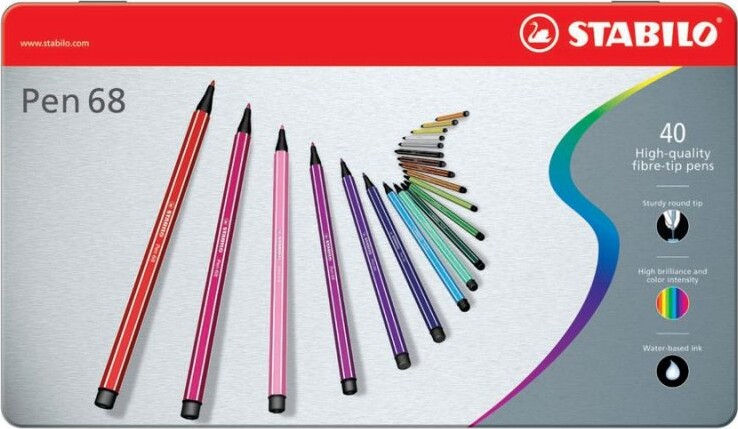 Stabilo Pen 68 - Farve Tusser Til Børn Og Voksne - 40 Stk