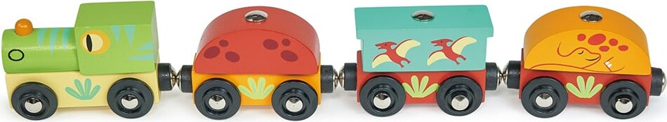 Dette tog som er kompatibel med andre Mentari stųrre togskinner i trę, bedstår en togmotor i trę og tre vogne, med aftagelige dinosaurstykker. De 3 dinosaurvogne er dekoreret i klare farver og er...