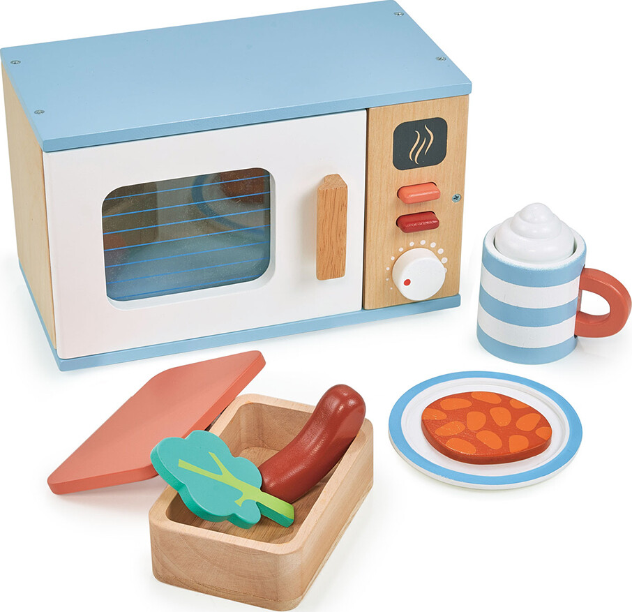Lege-mikroovn i træ til at varme pølseretten og kakao med flødeskum! Mikrobølgeovnen har en...