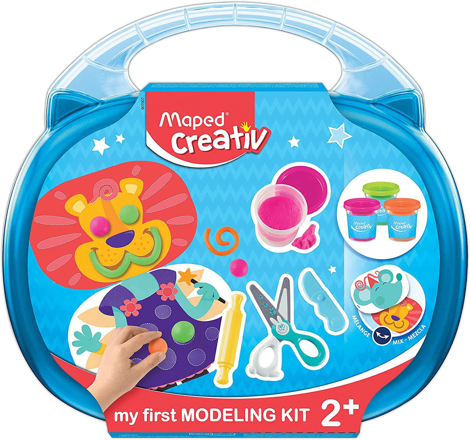 Sjovt modellervokssæt fra Maped med modellervoks i tre forskellige farver. Det har meget tilbehør og indeholder alt det, dit barn skal bruge til at skabe kreationer ud af modellervoks. Indeholder: 1 kagerulle, 1 saks, 1 plastkniv, 3 modellervoks, 3 kort. CE-mærket.