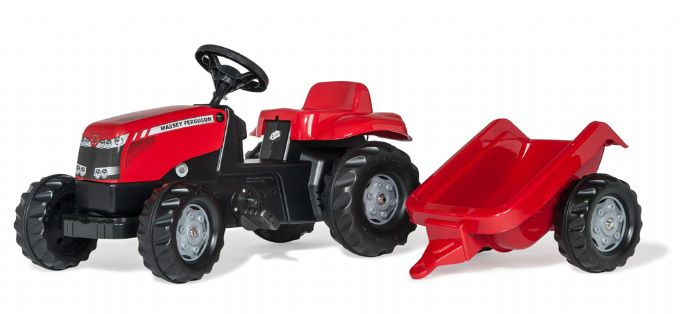 Rød Massey Ferguson traktor med trailer