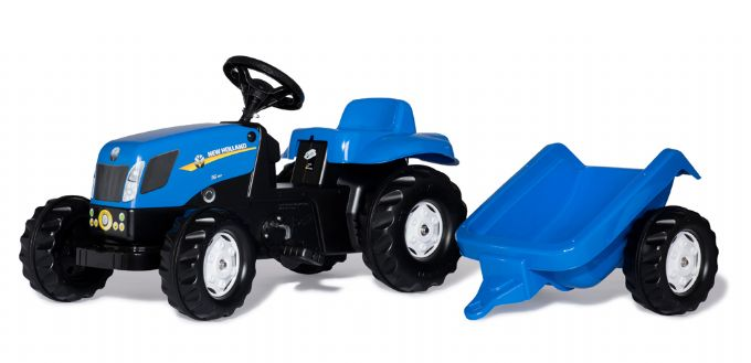 Fra 2,5 - 5 år. Vægt: 7,8 kg. Mål: 134 x 47 x 52 cm. Rolly Toys pedaltraktor med anhænger. Traktorens køler kan åbnes. Med beskyttet kæde.
