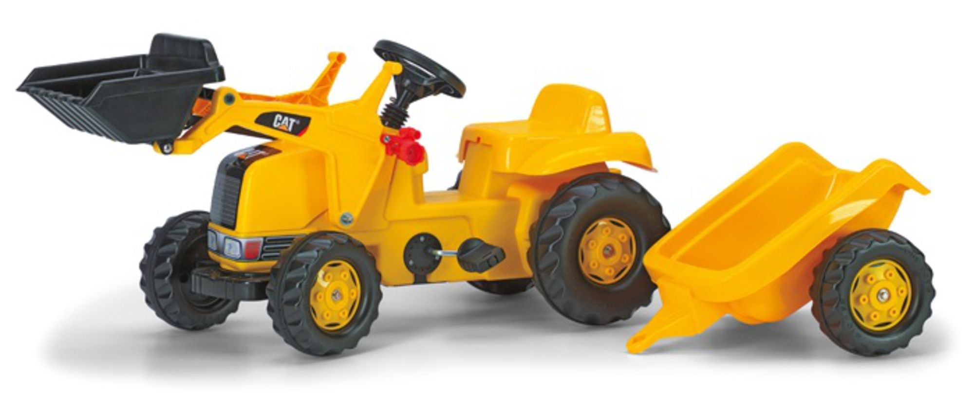 Rolly Toys Gravemaskine med Anhænger Cat er en rigtig fin traktor af højeste kvalitet.Traktoren har motorhjelm der kan åbnes, med fine detaljer. Pedalerne kan justeres for at tilpasse afstanden til sædet, så det passer til barnets benlængde. Denne seje gravemaskine har stor frontskovl som kan laste en masse sand/grus. Anhængeren kan kobles af eller på.Mål: 161 x 47 x 55 cm (længde med anhænger).Vægt: 9,2 kg.Til børn mellem 2,5 og 5 år.Farve: Gul.