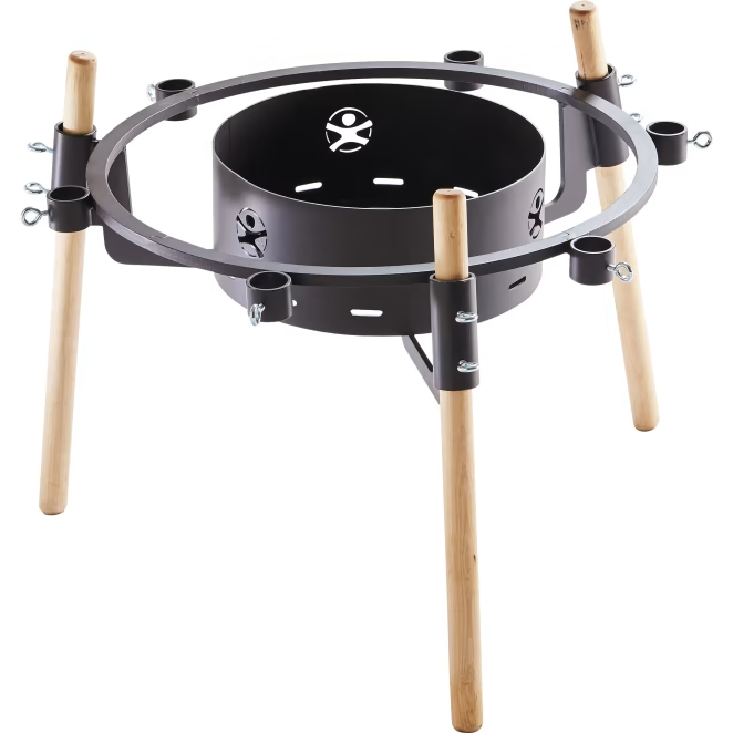 Smart bålfad, som øger sikkerheden væsentligt, når I vil lave bål. Bålfadet hæver ilden over underlaget, så der ikke så nemt sker uheld.Det har løse ben, så det er nemt at transportere. Skru benene på, og så er I klar. Der er 6 ekstra huller til at skrue pinde fast i, så I kan lave improviserede grillstativer eller holdere til gryder.Når I er færdige med bålet, er det nemt at tømme fadet for aske. Husk at vente, til alt er kølet ned. Bør kun anvendes sammen med en voksen.