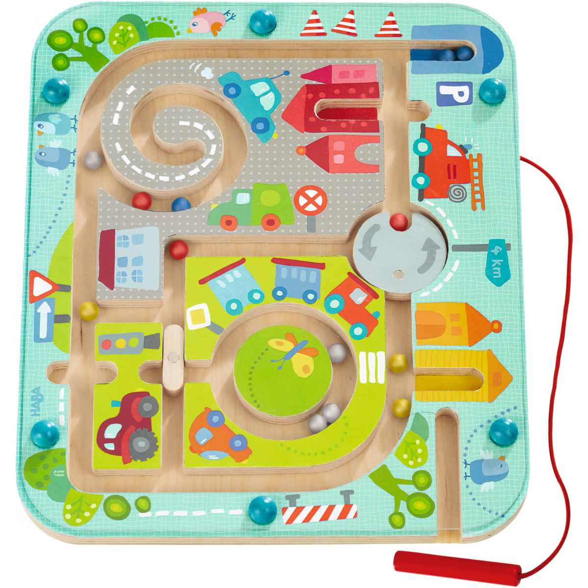 Haba - Magnetisk labyrint - På tur gennem byen. Er velegnet til Finmotorik,Hånd-øje-koordination,Kognitive færdigheder og passer til aldersgrupperne: 2 år,2,5 år,3 år,4 år