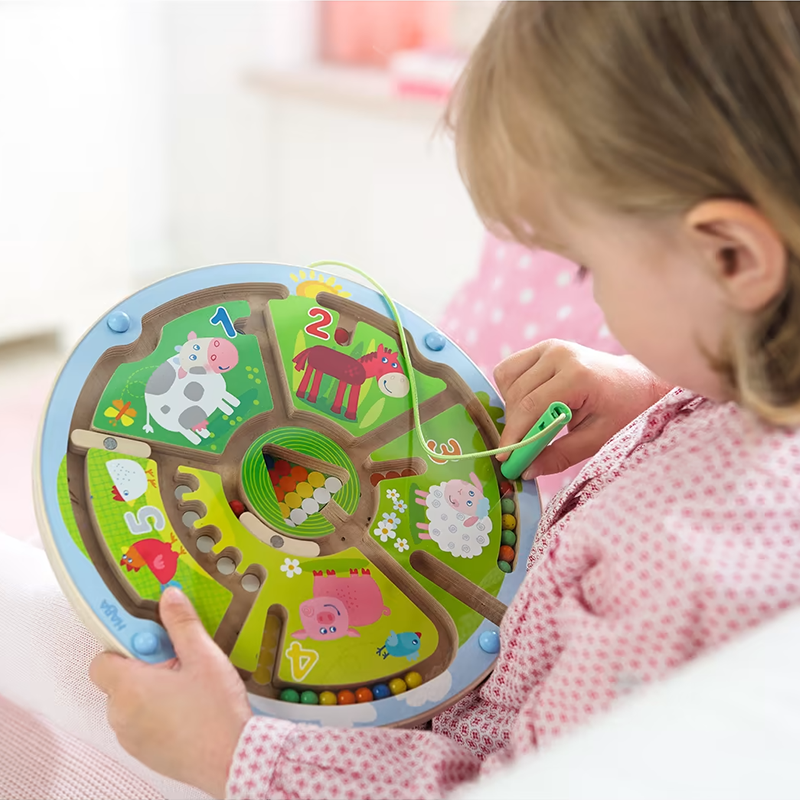 Haba - Magnetisk labyrint - Tæl til fem. Er velegnet til Finmotorik,Hånd-øje-koordination,Kognitive færdigheder og passer til aldersgrupperne: 2 år,2,5 år,3 år,4 år