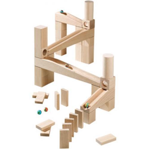 Dette mindre kuglebanesÊt indeholder dele, der er ideel som introduktionssÊt. SÊttet kan snildt udvides med andre af Haba kuglebaneprodukter.Leg med kuglebane er en kreativ proces, der aldrig bliver bygget helt fÊrdig. Hele tiden kan barnet inddrage elementer, enten kuglebane tilbehÞr, eller ting fra vÊrelset (f.eks. Lego, bÞtter eller andre klodser) til legen. Banen kan fÞres hen over en skammel, eller rundt om bordbenet, ingenting er umuligt.Begejstringen er stor, nÃ¥r kuglen suser ned ad banen. Kuglebanen kan bygges pÃ¥ det niveau som passer barnet, sÃ¥ derfor er det en meget alsidig leg, der holder i Ã¥revis.Fremmer bl.a. kreativiteten, finmotorikken og giver barnet succesoplevelser. God til social leg.SÊttet indeholder:2 ramper pÃ¥ 32 cm2 ramper pÃ¥ 16 cm12 klodser (4 x 4 x 4 cm)5 klodser (8 x 4 x 4 cm)3 hjÞrneklodser med hul (4 x 4 x 4 cm)2 runde klodser Ø 4 cm L 8 cm)12 domino brikkersamt 6 glaskugler.