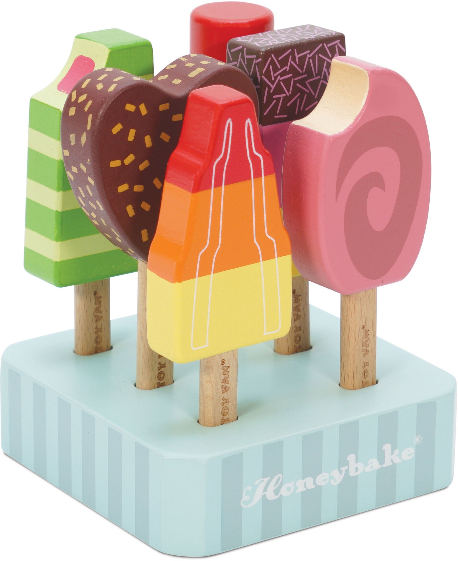 Pindeis-sæt fra Le Toy Van med et detaljeret design i flotte farver. Perfekt til timevis af fantasifuld leg. - Indeholder: 6 ispinde, 1 stativ. - Detaljeret design. - Afrundede, glatte kanter. - Let at opbevare. - Let at rengøre med en fugtig klud. - 6 stk. - CE-mærket. - Anbefalet alder: Fra 3 år. - Træ.