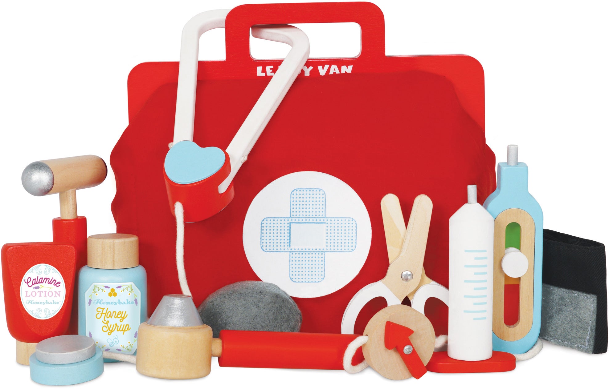 Vintage-lægesæt fra Le Toy Van med et detaljeret design. Det har en praktisk taske og en masse veterinærudstyr. Perfekt til timevis af fantasifuld leg. - Indeholder: 1 dyrlægetaske, 10 veterinærudstyr. - Bevægelige dele. - Til sjov og fantasifuld rolleleg. - Flotte detaljer. - Sødt og sjovt design. - Giftfri. - CE-mærket. - Anbefalet alder: Fra 3 år. - MDF, krydsfiner, bomuld.