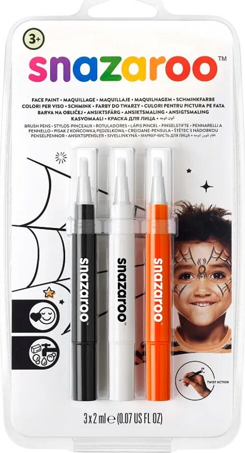 Snazaroo - Ansigtsmaling Sæt Med 3 Stk - Sort, Hvid Og Orange