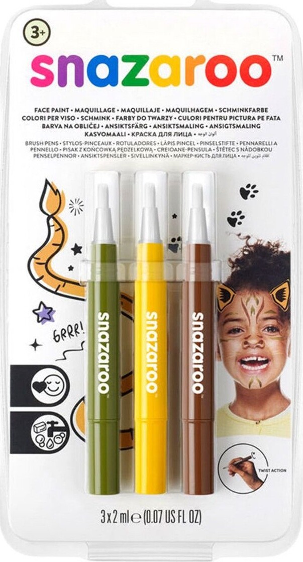 Snazaroo - Ansigtsmaling Sæt Med 3 Stk - Grøn, Gul Og Brun