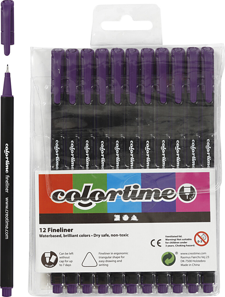 Colortime Fineliner Tuscher er vandbaseret tuscher af god kvalitet! De vandbaserede tuscher er idelle til brug i malebog, da vandbaseret tuscher ikke går i gennem papiret.  Tuschernes præcision og...