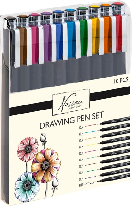 Fineliner - Tusser Sæt - 0,4 Mm - Nassau Fine Art - 10 Farver