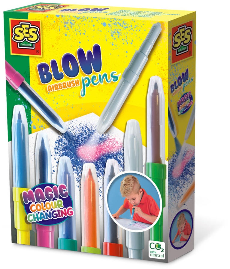 Cool airbrush-pustetusser. Perfekte til kreative stunder. - Særlige tusser. - Flere farver. - Spændende farveskiftende effekt. - Pust for at farvelægge. - Sprayeffekt, som du kan skabe cool farveovergange med. - 7-pak. - Anbefalet alder: Fra 5 år.