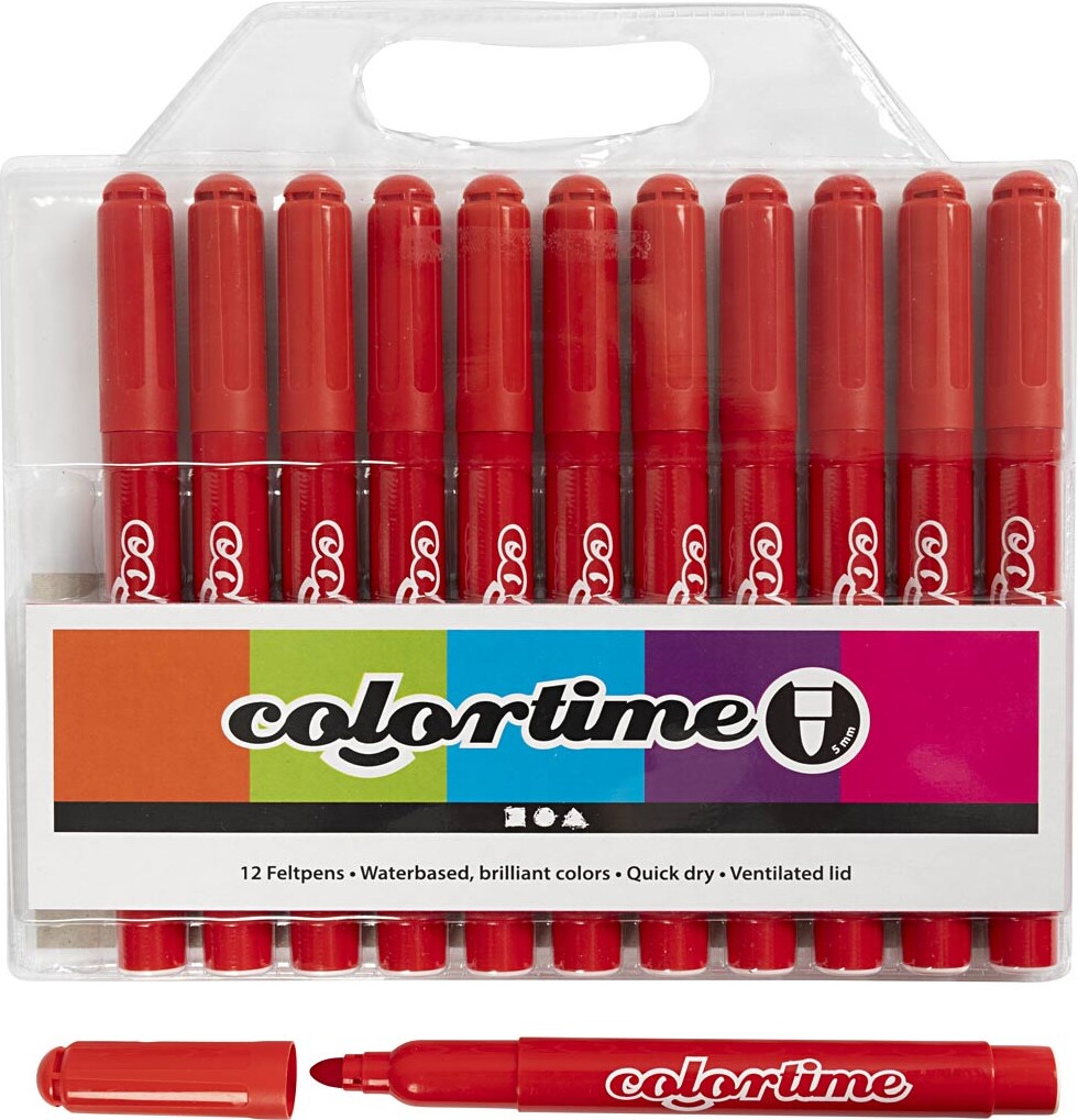 Disse vandbaserede tusser i en livlig rød farve er ideelle til både voksne og børn, der elsker at tegne, male eller skrive. Med en tykkelse på 5 mm giver de en tydelig og præcis streg, der er perfekt til både detaljeret kunst og bredere linjer. Tusserne er designet til at være lette at bruge, hvilket gør dem til et fantastisk valg for kreative sjæle i alle aldre. Tusserne er lavet med fokus på kvalitet og holdbarhed, hvilket sikrer, at farverne forbliver klare og levende, selv efter længere tids brug. De er ideelle til skoleprojekter, kunstneriske udfoldelser eller blot til at tilføje lidt farve til din dag. Den vandbaserede formel gør dem nemme at rengøre, så du ikke behøver at bekymre dig om pletter, og de er også mindre skadelige for miljøet sammenlignet med alkoholbaserede tusser. Med 12 stk. i pakken har du rigeligt med tusser til at dele med venner eller til at have et godt udvalg derhjemme. Uanset om du laver kort, scrapbooking, eller bare vil have sjov med farver, vil disse røde tusser være en fantastisk tilføjelse til dit kreative arsenal. Tag din kunst til det næste niveau med disse alsidige og farverige værktøjer!
