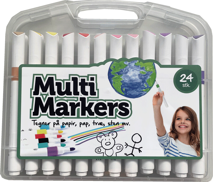 Stentusser Sæt - Multi Markers Til Papir Pap Træ Sten Mv. - 24 Stk.