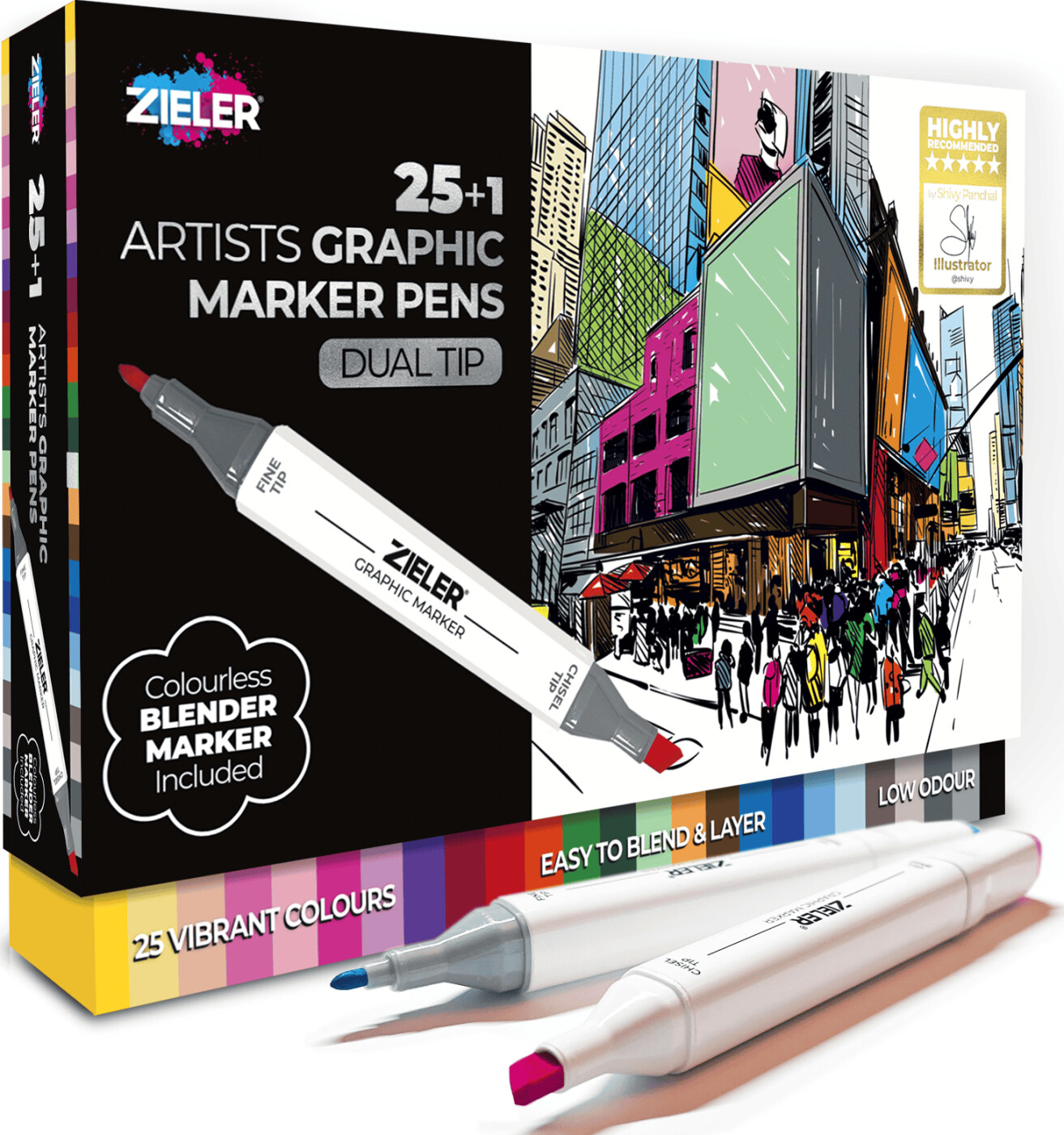 Kunstner Tusser Med Blender - Twin Markers - 25 Farver - Zieler