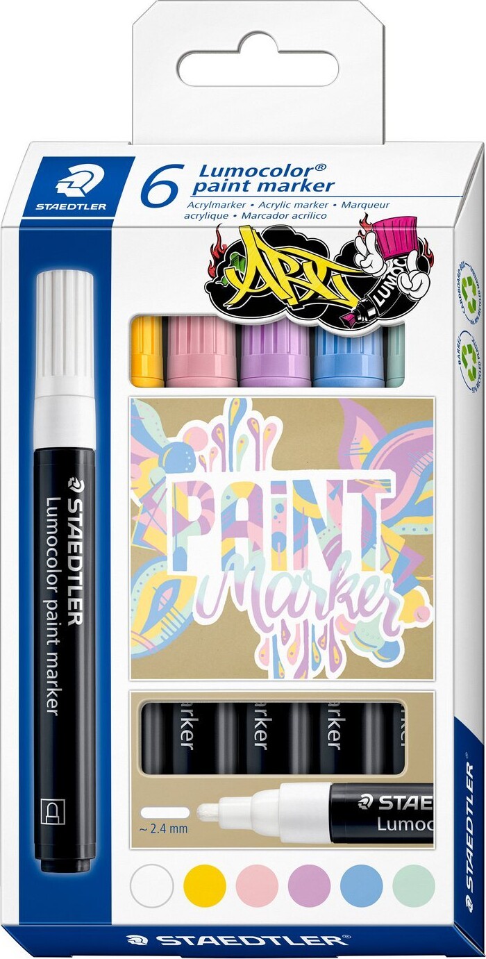 Staedtler - Lumocolor Paint Marker Akryl Tusser - 6 Farver