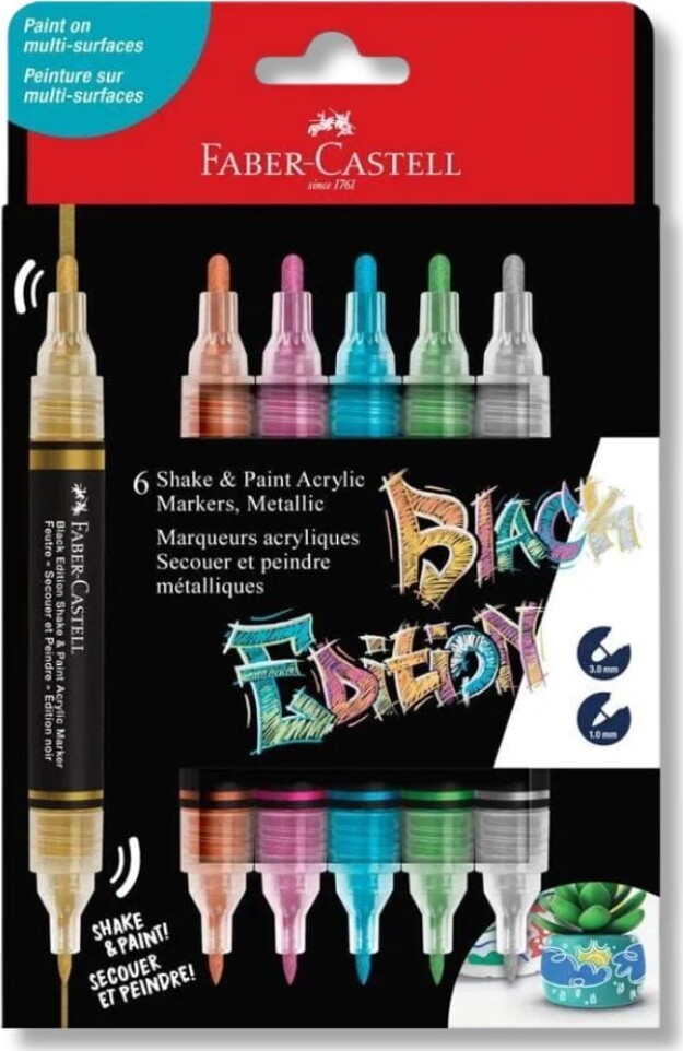 Faber-castell - Shake & Paint Akryltusser - 6 Stk - Metaliske Farver