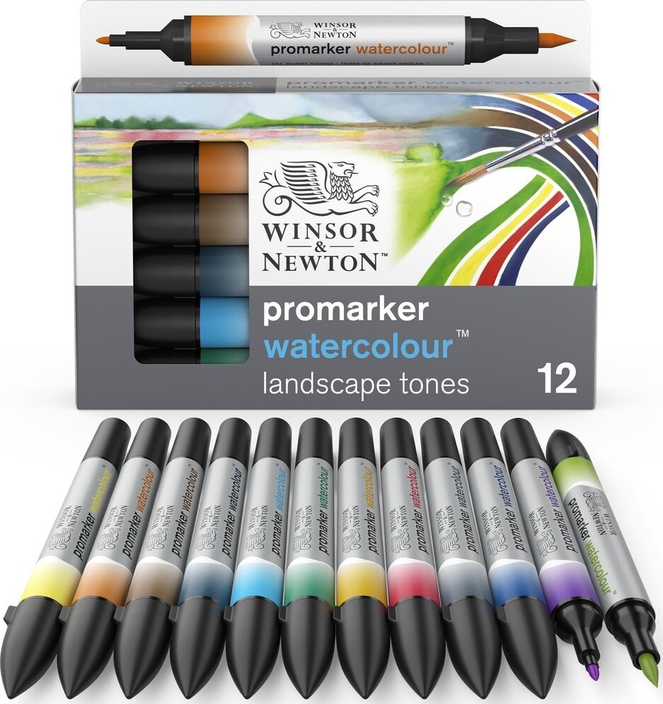 Winsor & Newton - Promarker Tusser i Landskabsfarver er et must-have for enhver kunstner og kreativ sjæl. Denne pakke indeholder 12 nøje udvalgte farver, der er perfekt til at skabe smukke landskabsillustrationer og naturmotiver.