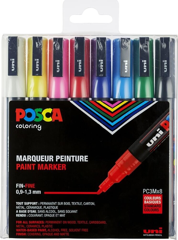 • Vandbaseret blæk: Posca tusserne er lavet med vandbaseret blæk, hvilket gør dem sikre at bruge og nemme at rengøre.