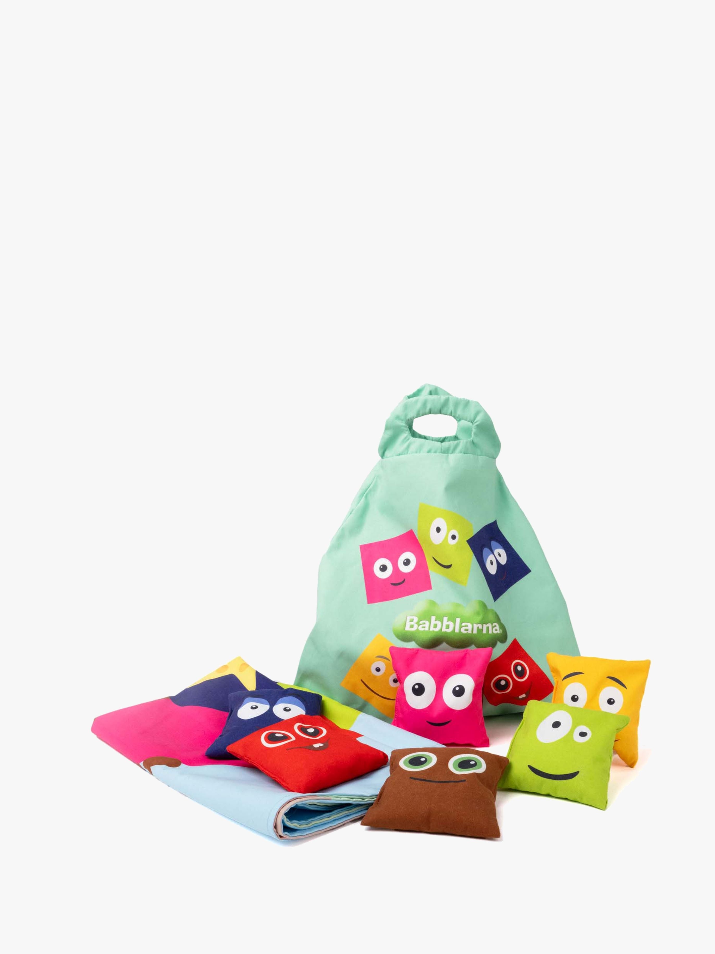 Ærtepose-spil fra Babblarna med en fin opbevaringspose. Det har seks bløde, sjove ærteposer i flotte farver. Perfekt til mange timers sjov. - Motiv fra Babblarna. - En tidløs klassiker. - Perfekt til udvikling af finmotorikken. - Velegnet til både indendørs og udendørs brug. - Indeholder: 6 ærteposer, 1 opbevaringspose, 1 mål. - CE-mærket. - Anbefalet alder: Fra nyfødt.