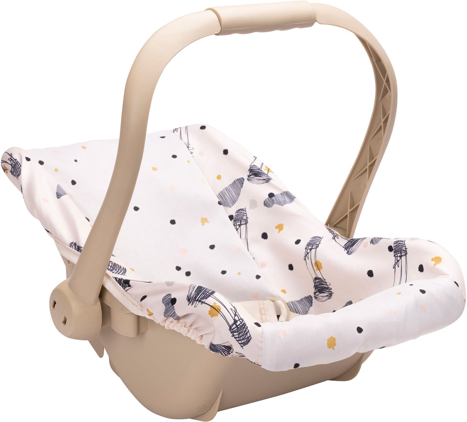 Autostol fra Skrållan med et fint design. Den har et praktisk, justerbart håndtag og en aftagelig polstring. Perfekt til timevis af fantasifuld leg. Passer dukker op til 45 cm. Dukken medfølger ikke. CE-mærket. Anbefalet alder: Fra 3 år. 90 % plastik, 10 % stof.