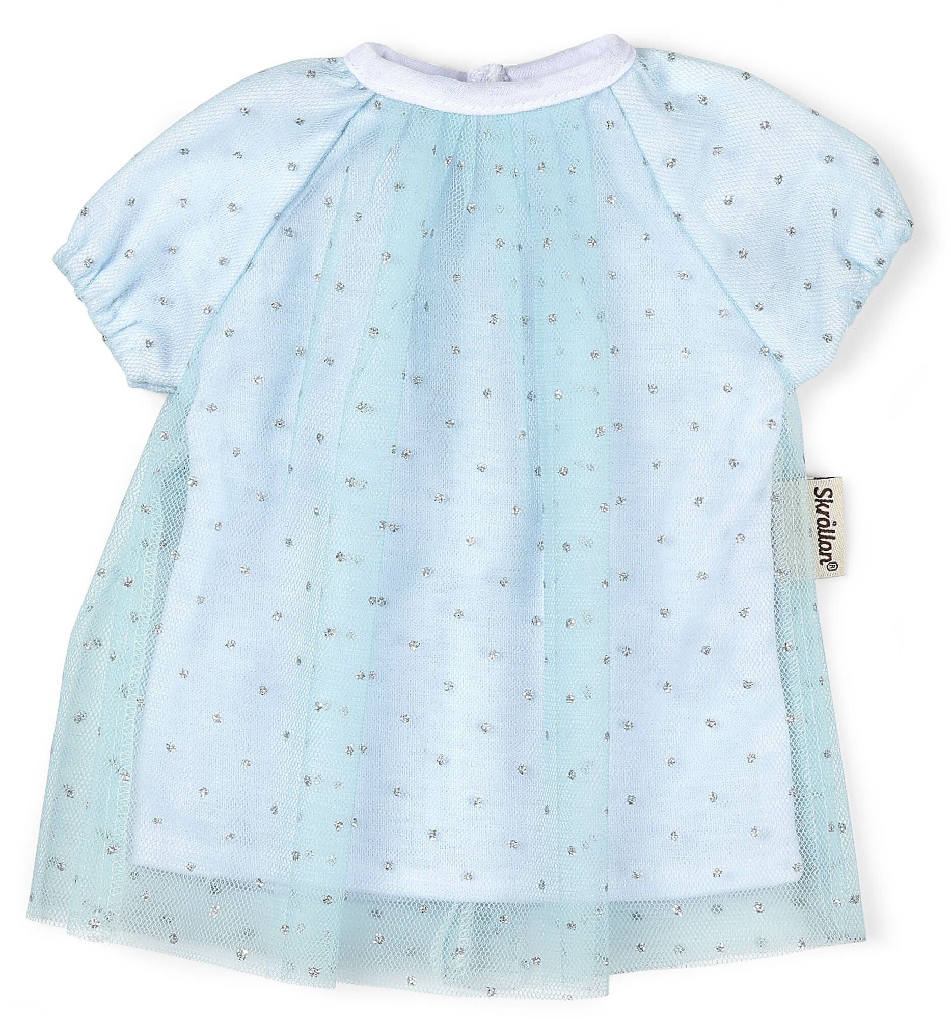 Festkjole fra Skrållan med et blåt, skinnende stof. Den har glitrende detaljer og velcrolukning. Perfekt til timevis af fantasifuld leg. Passer til dukker på 36-40 cm. CE-mærket. Anbefalet alder: Fra 3 år. Polyester.