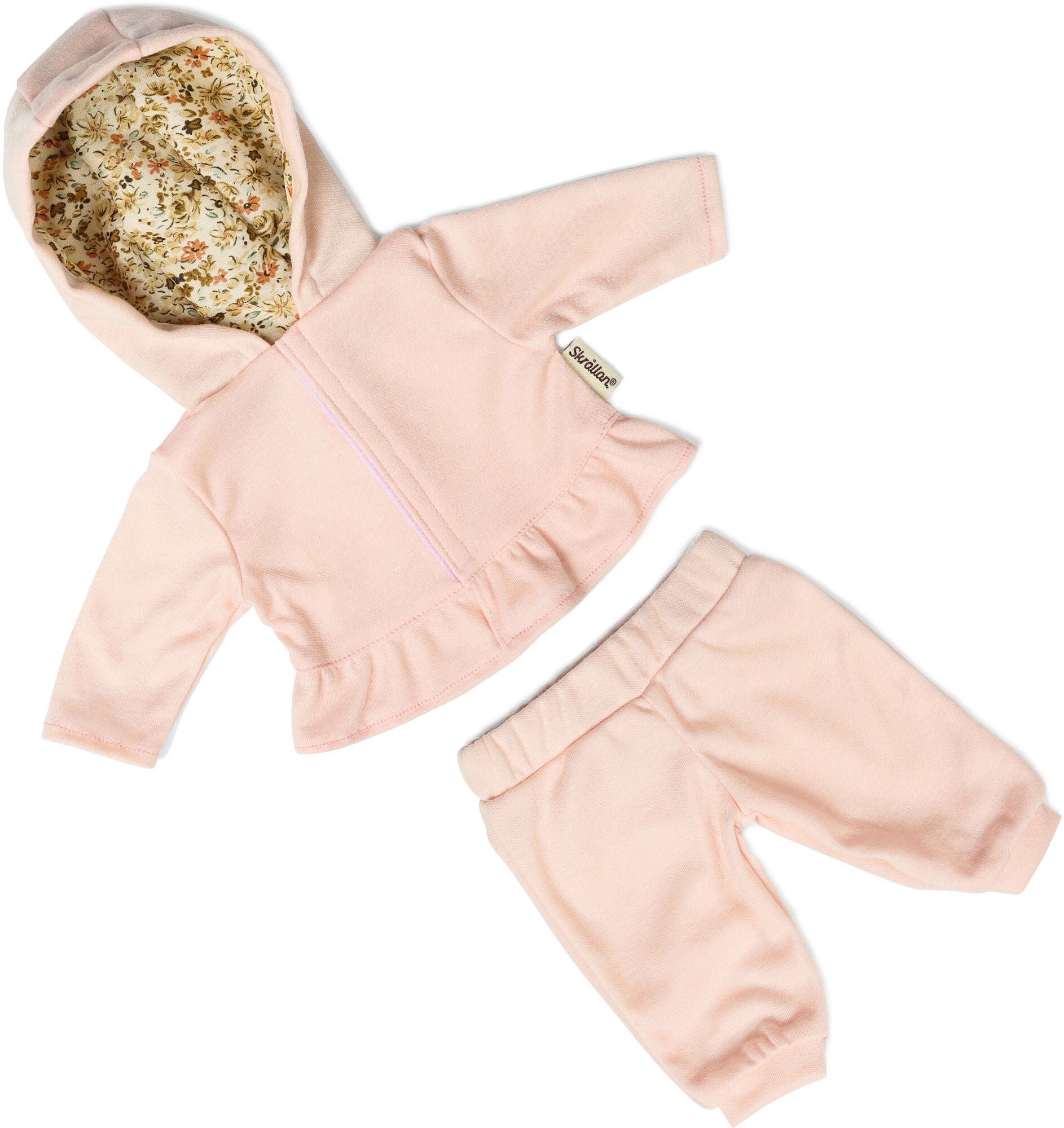 Joggingsæt fra Skrållan med et lyserødt, behageligt design. Det har en blød hættetrøje med flæsedetaljer og en hætte med et blomstermønster og matchende bukser. Perfekt til timevis af fantasifuld leg. Passer til dukker på 36-40 cm. CE-mærket. Anbefalet alder: Fra 3 år. Polyester.
