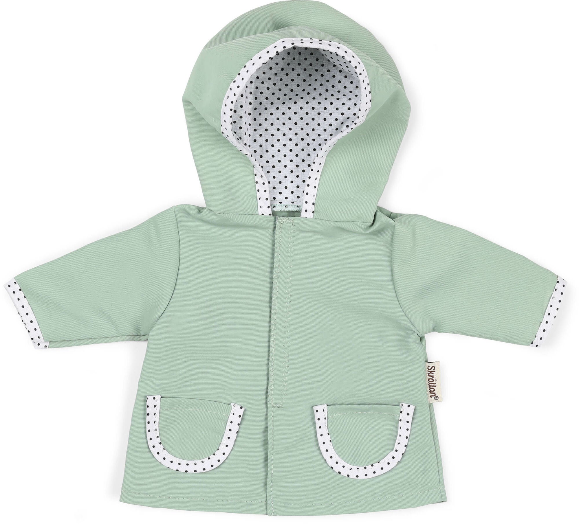 Regnjakke fra Skrållan med en syet hætte. Den har vandafvisende stof og et for med små, sorte prikker. Regnjakken har en velcrolukning. Perfekt til timevis af fantasifuld leg. Passer til dukker på 36-40 cm. CE-mærket. Anbefalet alder: Fra 3 år. Polyester.