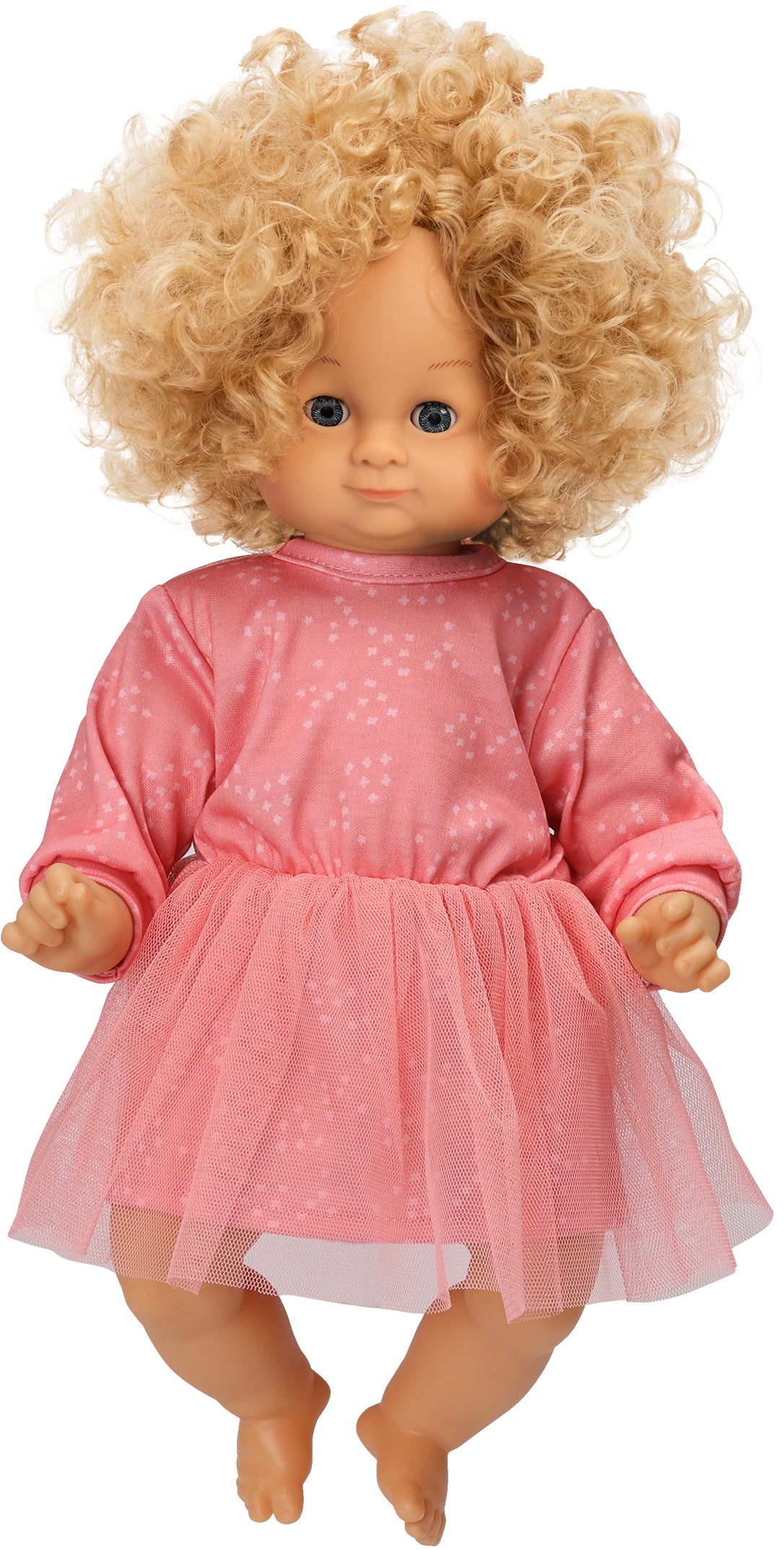 Fin taledukke fra Skrållan med en pink kjole. Perfekt til timevis af fantasifuld leg. - Taleknap. - Dukken kan grine, græde og har lige lært at snakke. - Kan lukke øjnene. - Blød krop. - Taler fem forskellige sprog. - Testbatterier medfølger. - Batterier medfølger. - CE-mærket. - Anbefalet alder: Fra 3 år. - Plastik.