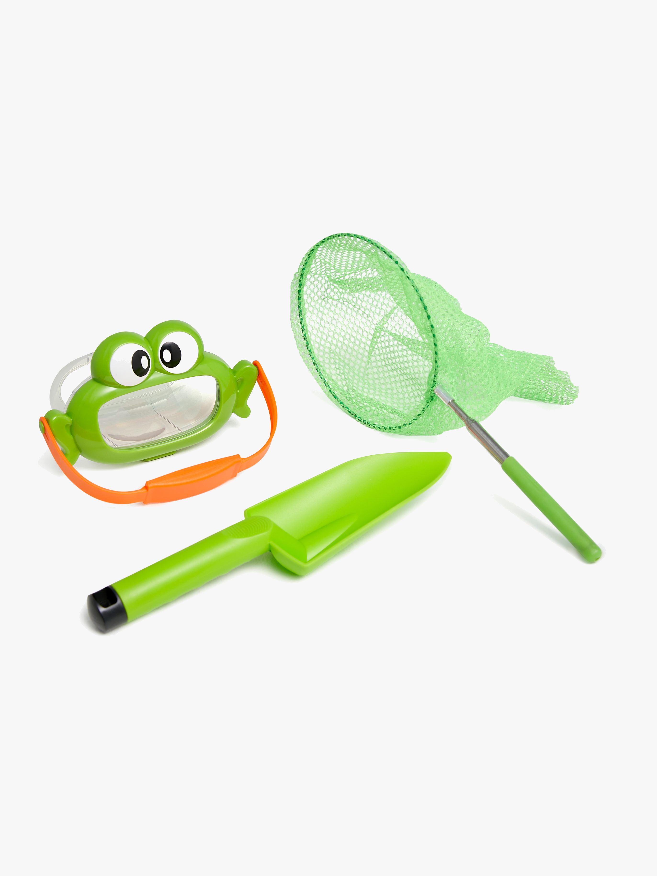 Dette Fippla My First produkt er det perfekte legesæt til små eventyrere, der elsker at udforske naturen. Legesættet indeholder tre dele: en farverig spand med et sødt frødesign, en lille grøn skovl og et praktisk net med en forlængbar stang. Dette design gør det nemt og sjovt for børn at samle spændende fund, uanset om de er i haven, på stranden eller i parken.