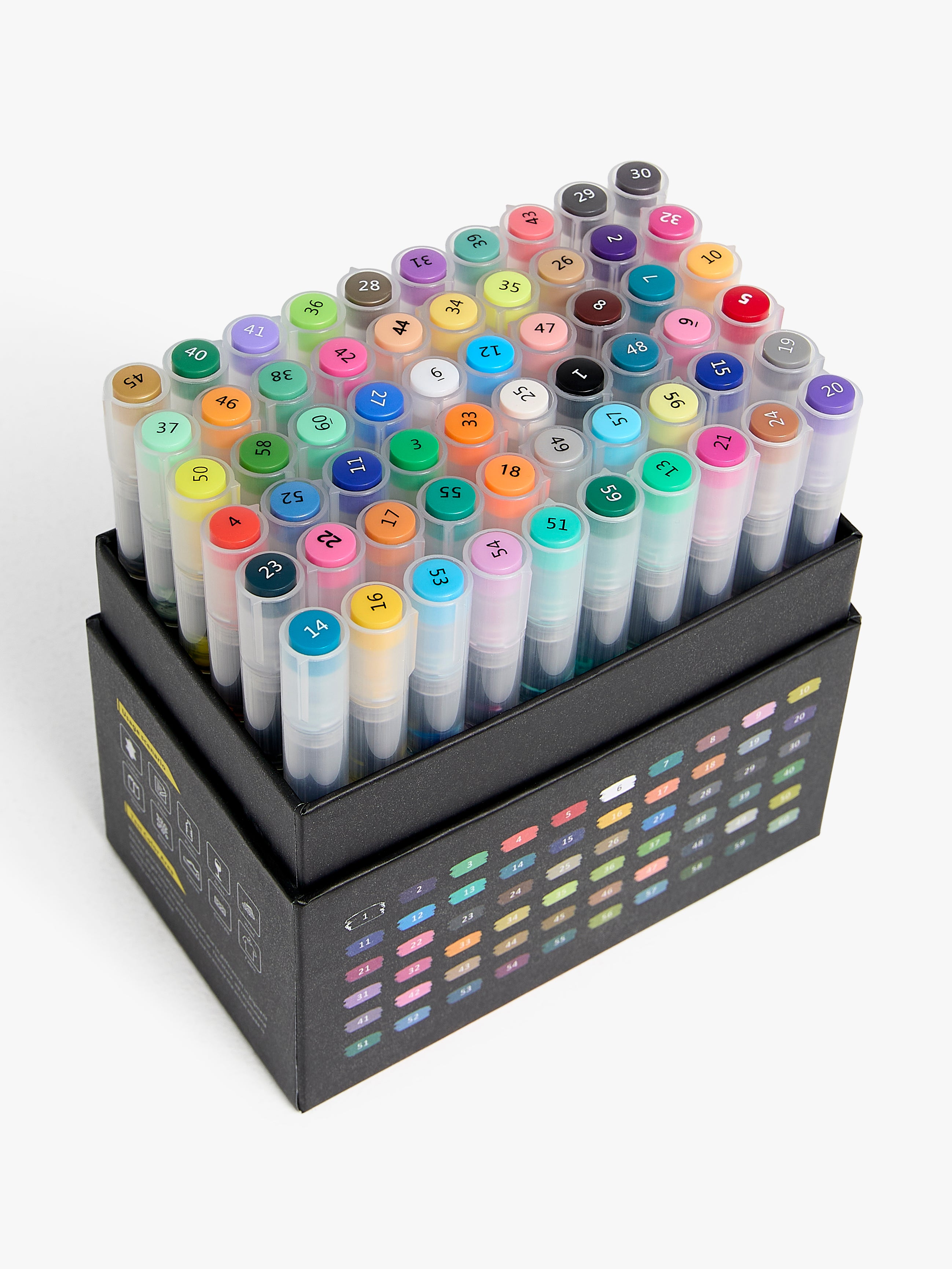 Fippla Akryltusser er det perfekte valg for alle kreative sjæle, der ønsker at udforske deres kunstneriske evner. Denne 60-pak indeholder tusser med en fleksibel penselspids, der giver en autentisk penseloplevelse, når du maler. Med en fremragende dækning og rig pigmentering kan du skabe fantastiske kunstværker, uanset om du arbejder på akvarelmalerier eller dekorative projekter.