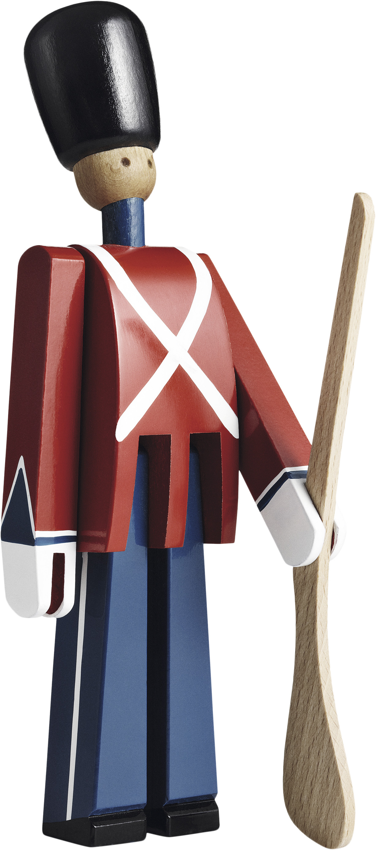 Kay Bojesen betragtede hver dag garden passerede forbi vinduerne hans kælderforretning Bredgade på vej til vagtskiftet på Amalienborg Slot. Det inspirerede ham til sine håndmalede gardere, her den menige soldat med gevær, der på deres egne vis står vagt o