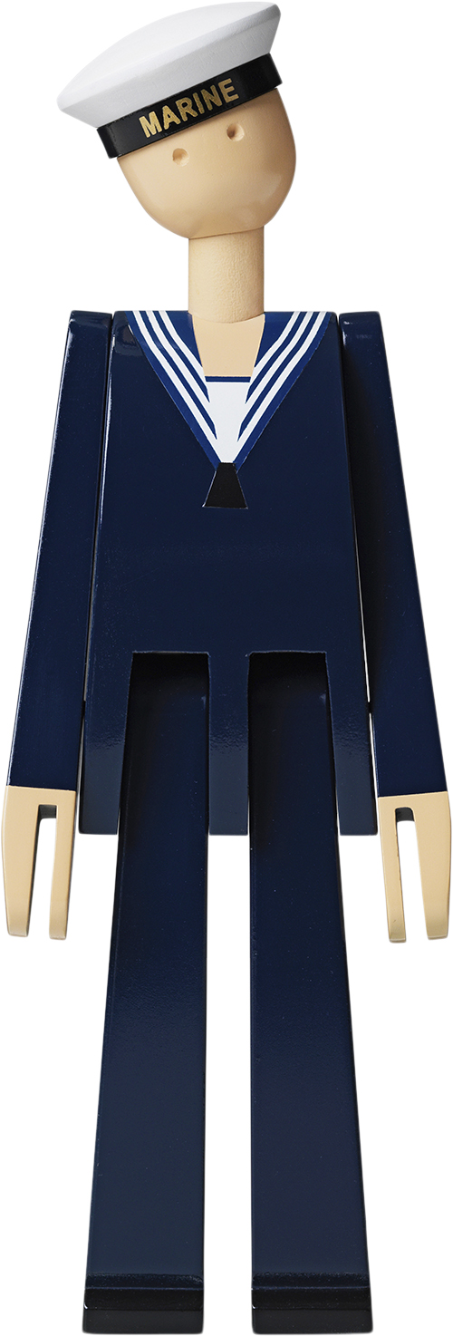 Kay Bojesen var inspireret af flere uniformerede instanser, hvilket ses i blandt andet Garderen og Politimanden. Den originale Marine figur har et charmerende udtryk med en slankere silhuet og hatten på skrå. Den mørkeblå uniform, den skrå hat og det stri