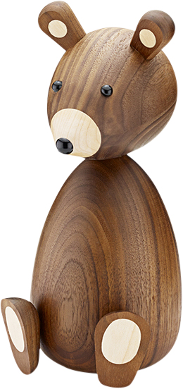 Bjørnen er lavet af mørk, amerikansk valnød med lyse detaljer ved ørerne,snuden og halen. Med et klassisk design og solidt materiale er Bjørnen et sandt designobjekt, der kan følge sin ejer gennem hele livet.