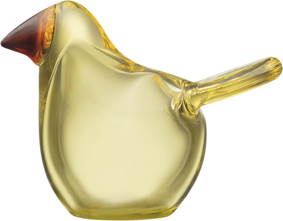 Iittala relancerer den legendariske designer Oiva Toikka's Fluesnapper fra 1970'erne. Den farverige fugl har i en lille krop i lysegul med kobber næb. Reflekterer lys smukt. Er elegant til boligindretningen og en dyrebar gave. Mundblæst i Finland.