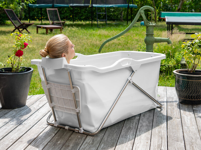Nyd et afslappende bad i et sammenfoldeligt badekar til voksne! Fyld karret med vand, sæt dig til rette og læn dig mod nakkestøtten. Når badestunden er ovre, lukker du vandet ud og folder karret sammen, så kan det være under sengen eller bag ved døren!