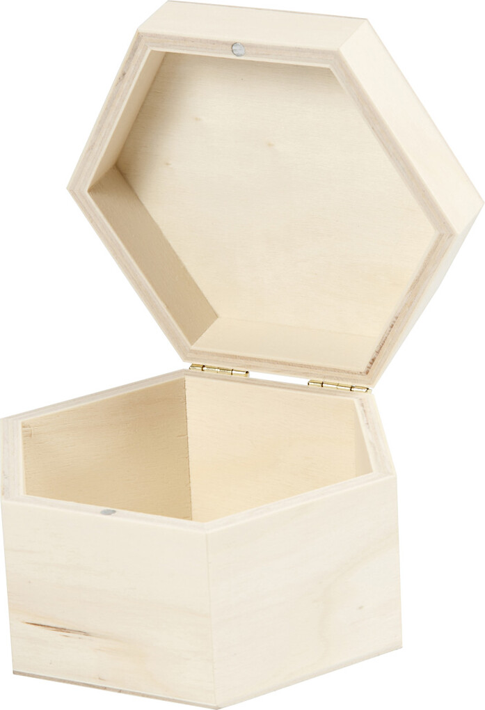 Sekskantet ęske af lyst trę med magnetlås. Den kan bruges som den er i det fine lysetrę, eller...
