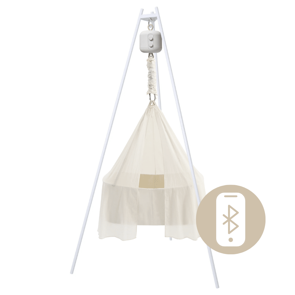 Membantu Vugge bundle med stativ og vuggemotor Alt hvad du kunne få brug for har vi samlet i denne Membantu vugge bundle, hvis du har brug for en vugge med stativ. Hvorfor skal du vælge Membantu ? Støjsvag LeeLo vuggemotor (med denne motor behøver du ik