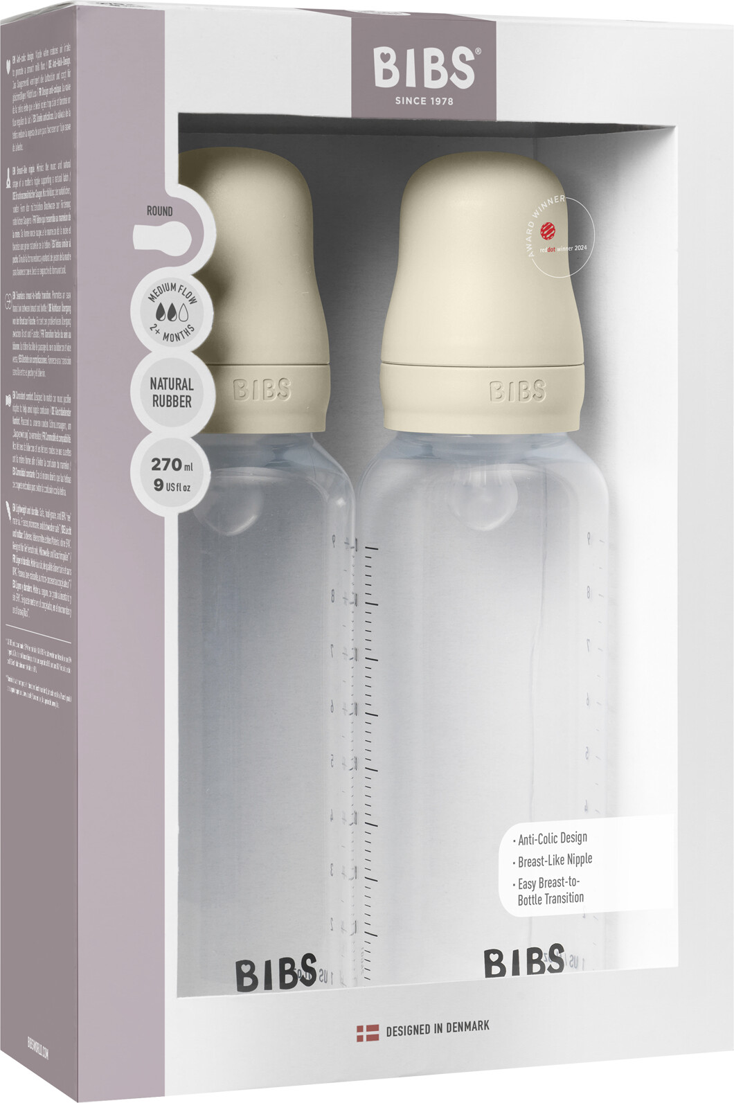 Bibs - Baby Bottle Round Silicone 2 Pack Medium Flow - Ivory - 270 Ml