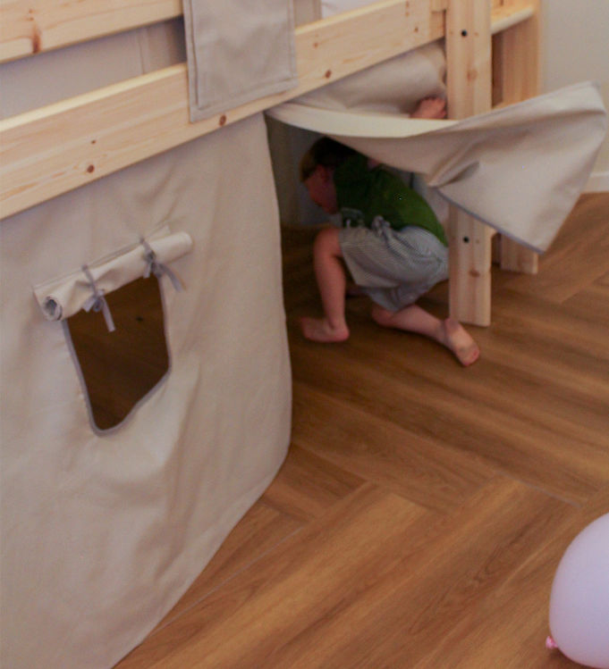 Giv dit barns værelse et unikt og fantasifuldt udtryk med Flexa Legeforhæng til Halvhøj Seng - Dawn - Warm Gray. Dette smarte legeforhæng er designet til at skabe en hyggelig og indbydende legestue under sengen, hvor barnet kan lege, læse eller slappe af.