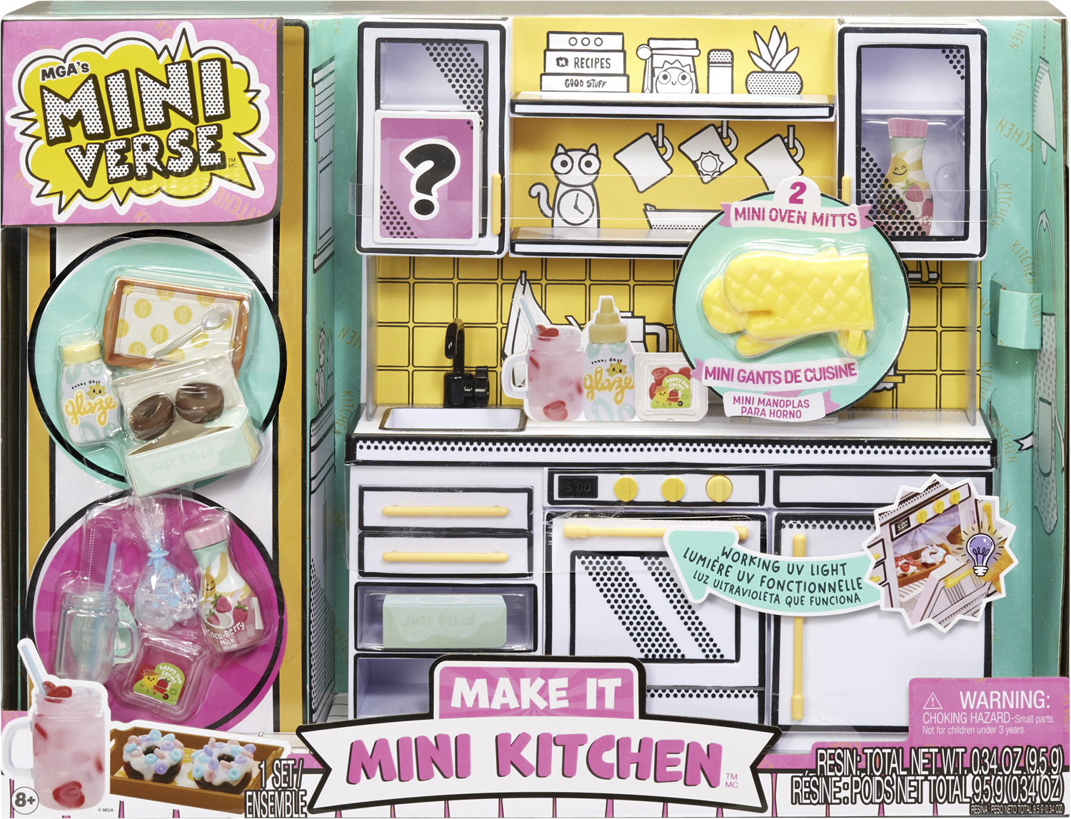 Make it Mini køkken, hvor du kan forberede, lade hærde og udstille dine Make It Mini Food yndlingsretter og -drikke Legesættet indeholder ovn, køleskab og bordplade. Forbered din kopiret eller -drik i ministørrelse på bordpladen, lad den hærde i enten køl