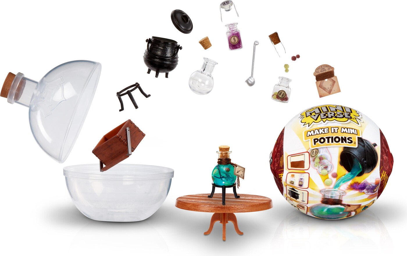 Harry Potter x MGA's Miniverse.  Hver bold kommer med realistiske mini-"ingredienser" og tilbehør til at lave dine egne mini-replikaer af dine yndlingsdrikke fra Harry...