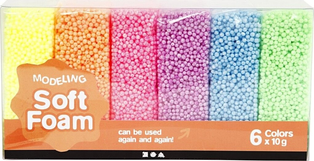 Blød og let modelleringsmasse med grov konsistens af polystyrenperler. Tørrer ikke op og kan bruges igen og igen, og det er let at lige til at begynde at arbejde med. Denne pakke indeholder seks...