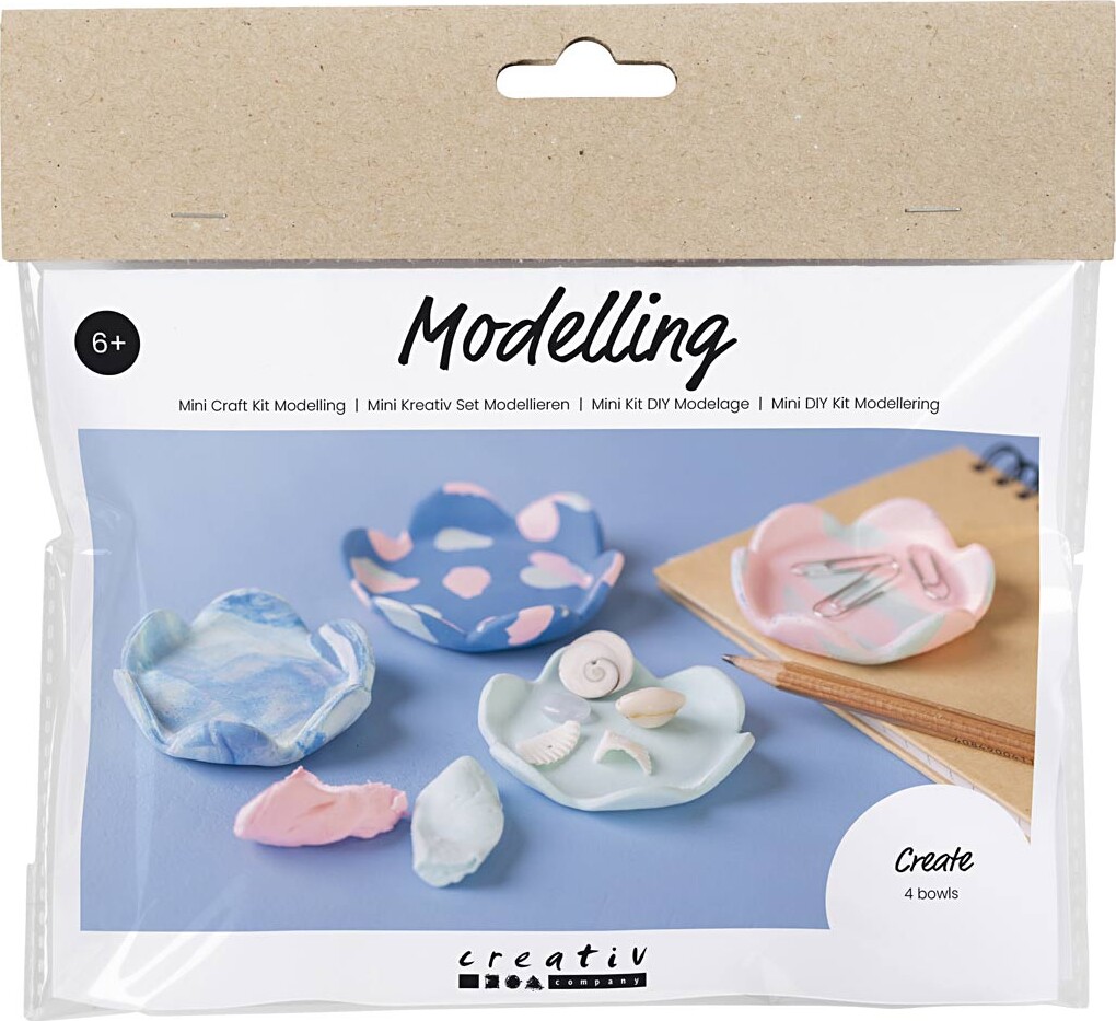 Mini Diy Kit Modellering - Skåle - Pastelblå - Lys Pink - 1pk.
