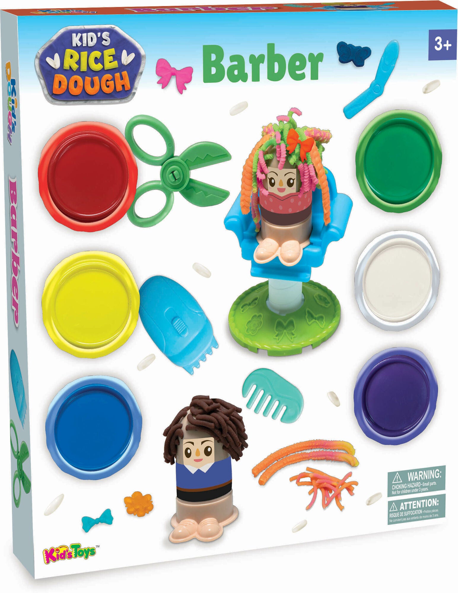 Modellervoks fra Kid's Rice Dough med beholdere med modellervoks i forskellige farver. Den har sjove redskaber så dit barn kan lave sine egne figurer med unikke frisurer. Perfekt til kreative aktiviteter. CE-mærket. Modellervoksen er baseret på ris og er glutenfri. Anbefalet alder: Fra 3 år.