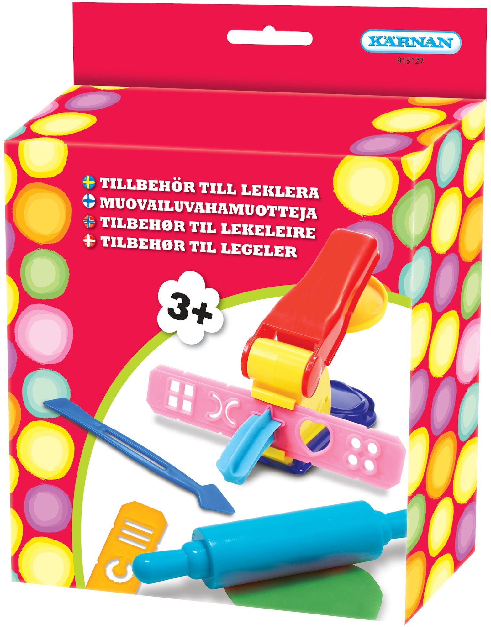 Tilbehør fra Kärnan som gør det muligt at skabe og forme sjove modellervoksfigurer og andre kreationer. Perfekt til mange timers kreativ leg og kunsthåndværk. OBS: modellervoks medfølger ikke. Indeholder: 1 modellervokspresser, 2 skabeloner, 1 kagerulle, 1 værktøj. Anbefalet alder: Fra 3 år. Plastik.