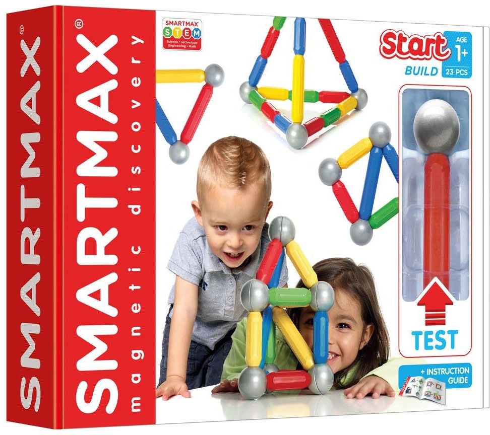 Sjovt startsæt fra Smart Max til små børn, der elsker at lege med magneter. Lærer dit barn, hvordan magneters poler fungerer. Magneterne skal have modsatte poler for at kunne blive sat sammen. Pindene med varme farver (gul, organge, lyserød og rød) kan sættes sammen med pindene med kolde farver (blå, grøn, hvid og lilla). Kuglerne kan sættes sammen med alle pinde, uanset farve. Du kan sætte op mod 20 pinde fast på en kugle. Anbefalet alder: Fra 1 år.